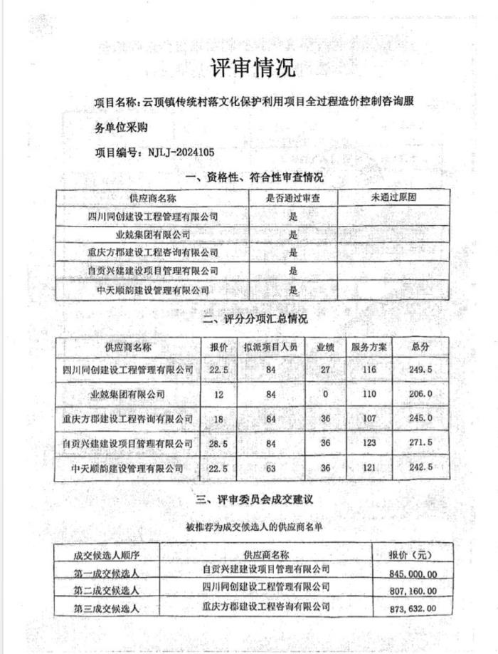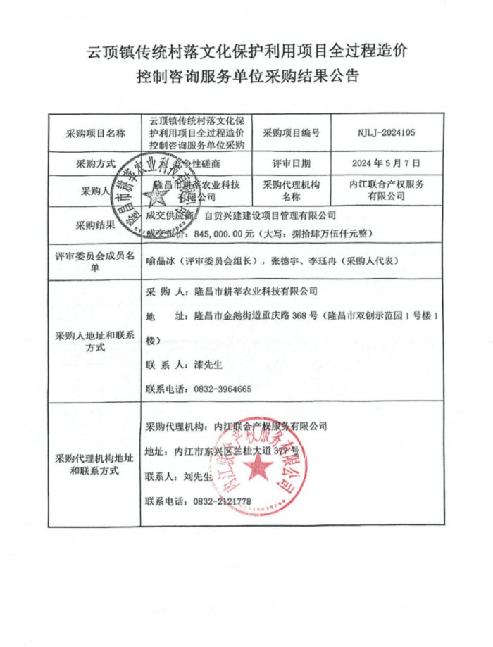 云頂鎮(zhèn)傳統(tǒng)村落文化保護(hù)利用項(xiàng)目全過(guò)程造價(jià)控制咨詢服務(wù)單位采購(gòu)結(jié)果公告