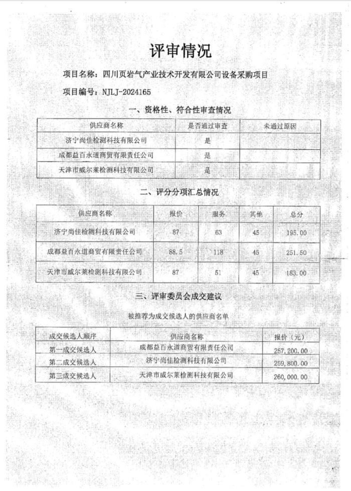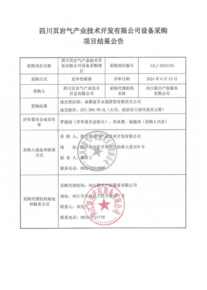 四川頁巖氣產(chǎn)業(yè)技術(shù)開發(fā)有限公司設(shè)備采購項目結(jié)果公告