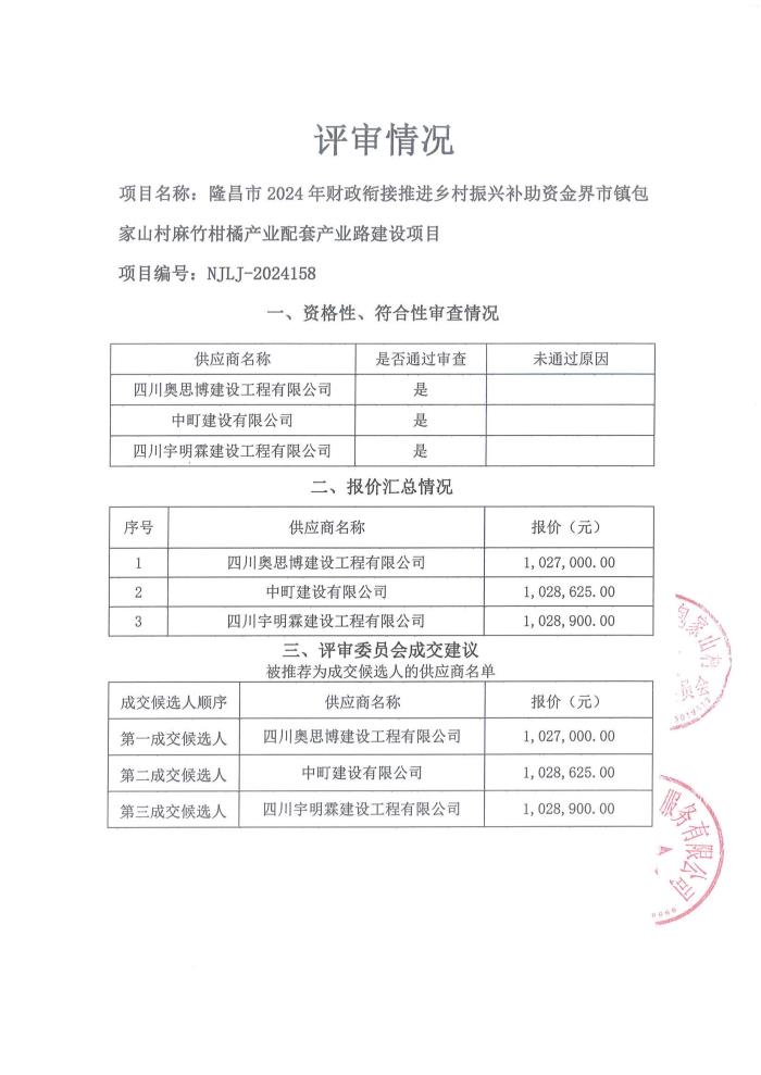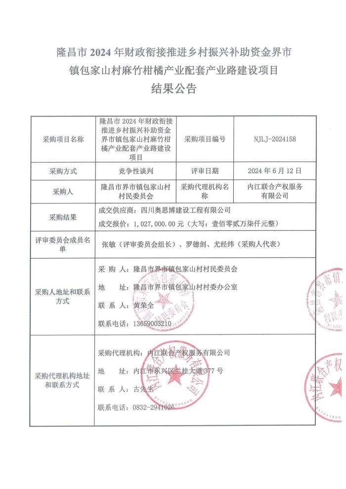 隆昌市2024年財(cái)政銜接推進(jìn)鄉(xiāng)村振興補(bǔ)助資金界市鎮(zhèn)包家山村麻竹柑橘產(chǎn)業(yè)配套產(chǎn)業(yè)路建設(shè)項(xiàng)目結(jié)果公告