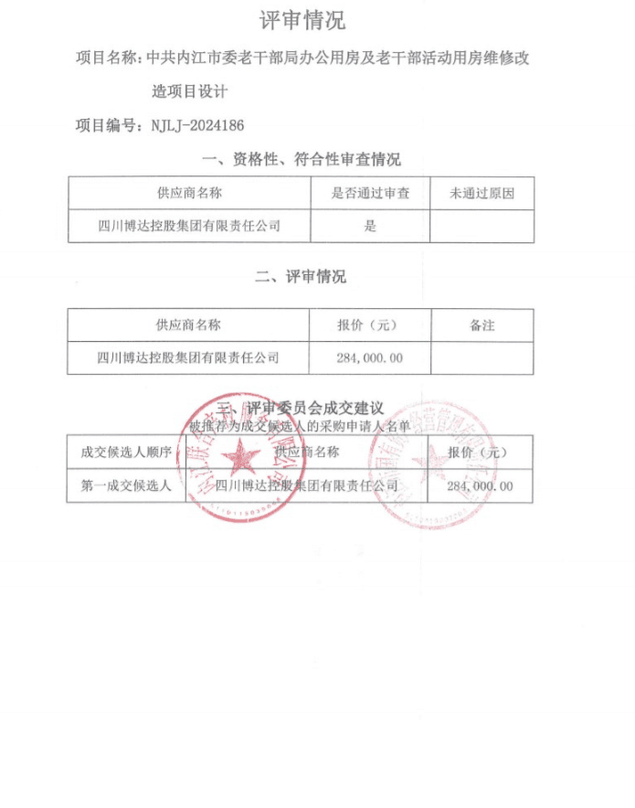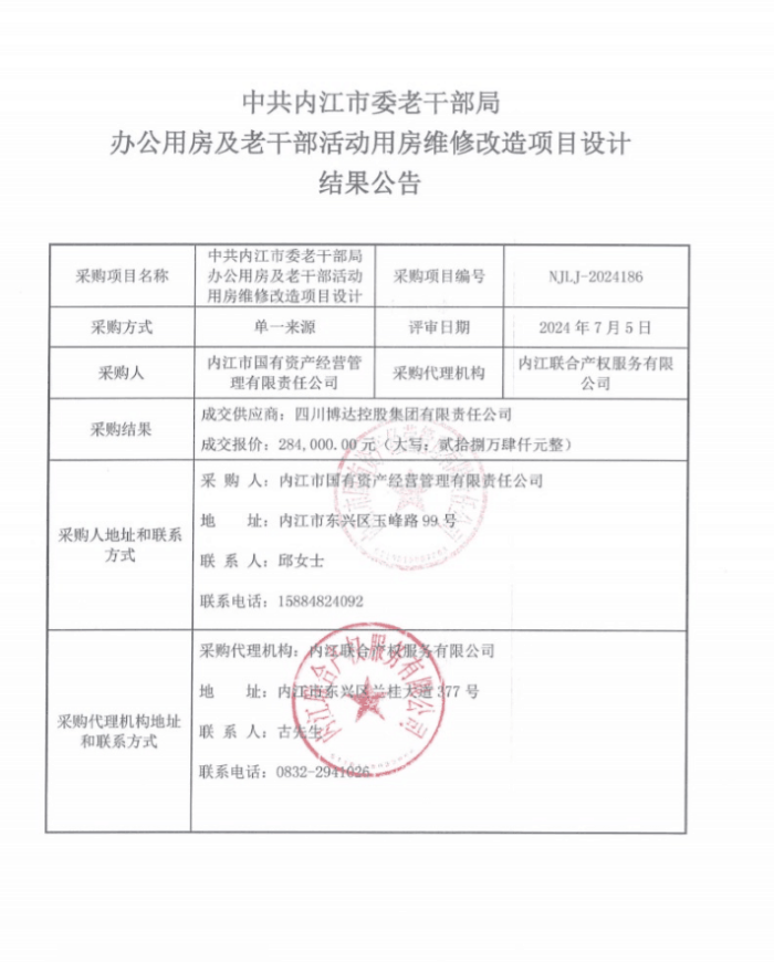 中共內(nèi)江市委老干部局辦公用房及老干部活動用房維修改造項目設計結(jié)果公告