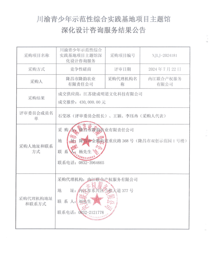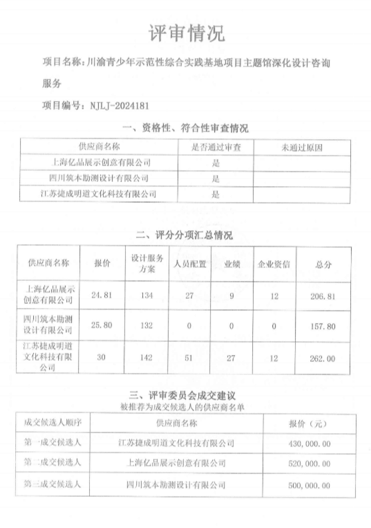 川渝青少年示范性綜合實踐基地項目主題館深化設計咨詢服務結(jié)果公告