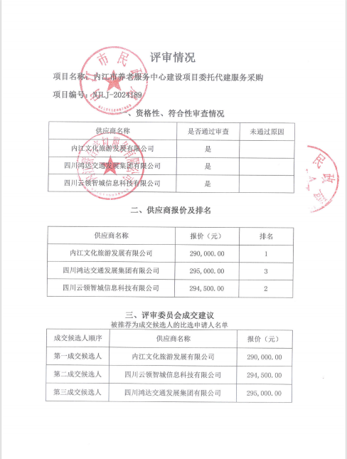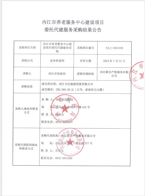 內(nèi)江市養(yǎng)老服務(wù)中心建設(shè)項目委托代建服務(wù)采購結(jié)果公告