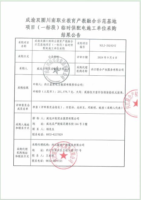 成渝雙圈川南職業(yè)教育產(chǎn)教融合示范基地項(xiàng)目(一標(biāo)段)臨時(shí)供配電施工單位采購結(jié)果公告