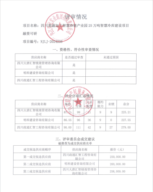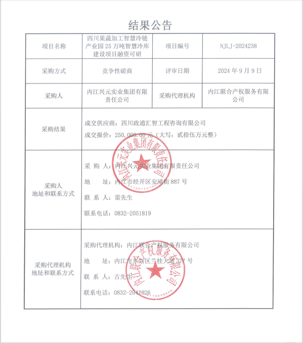 四川果蔬加工智慧冷鏈產(chǎn)業(yè)園25萬(wàn)噸智慧冷庫(kù)建設(shè)項(xiàng)目融資可研結(jié)果公告