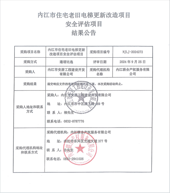 內(nèi)江市住宅老舊電梯更新改造項目安全評估項目結果公告