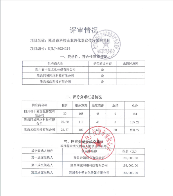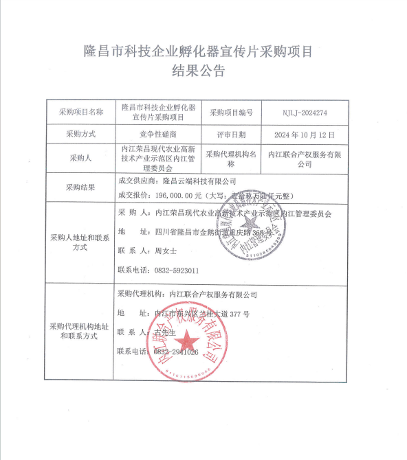 隆昌市科技企業(yè)孵化器宣傳片采購項目結(jié)果公告