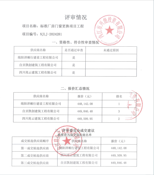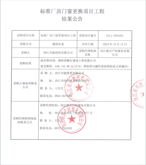標準廠房門窗更換項目工程結果公告