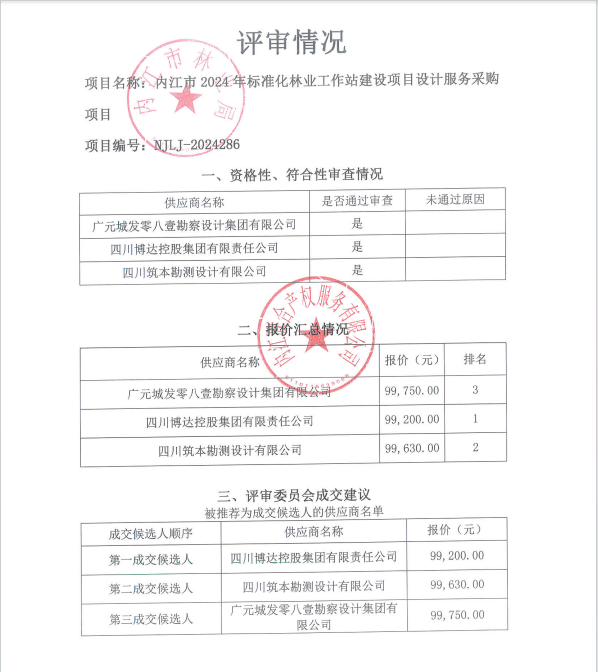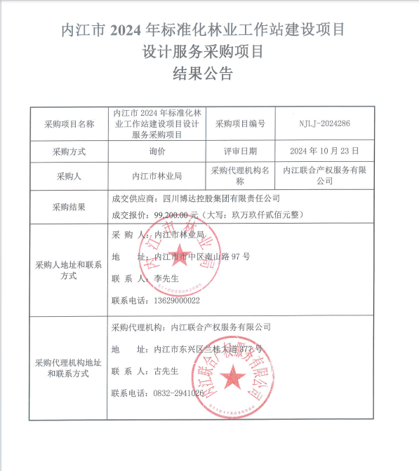 內(nèi)江市2024年標(biāo)準(zhǔn)化林業(yè)工作站建設(shè)項目設(shè)計服務(wù)采購項目結(jié)果公告