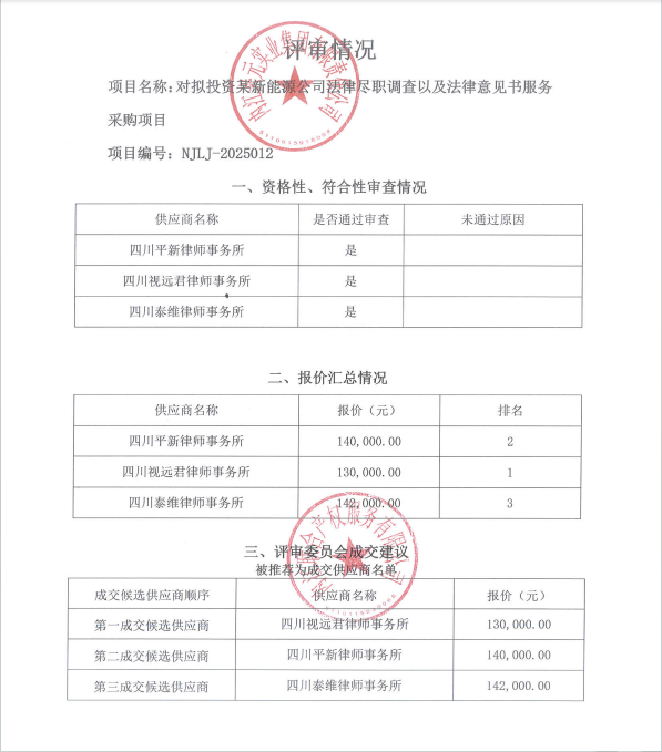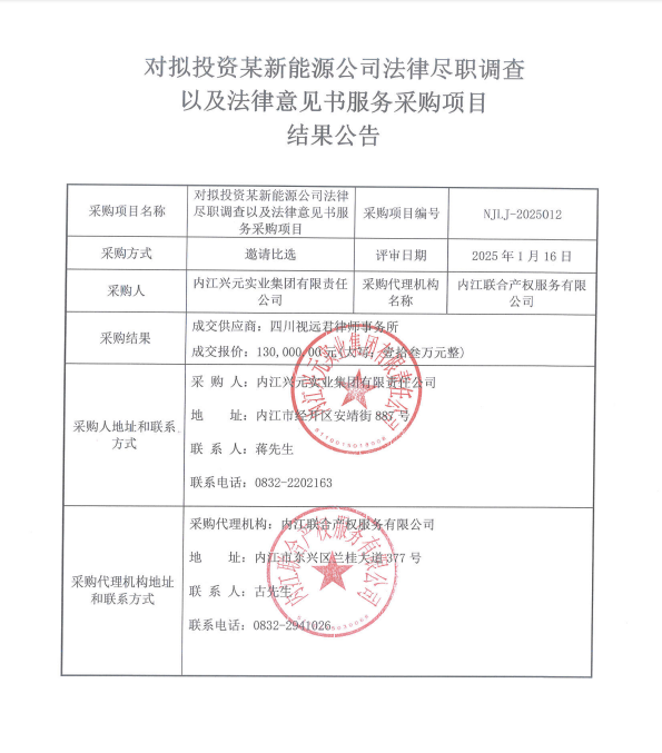 對(duì)擬投資某新能源公司法律盡職調(diào)查以及法律意見(jiàn)書(shū)服務(wù)采購(gòu)項(xiàng)目結(jié)果公告