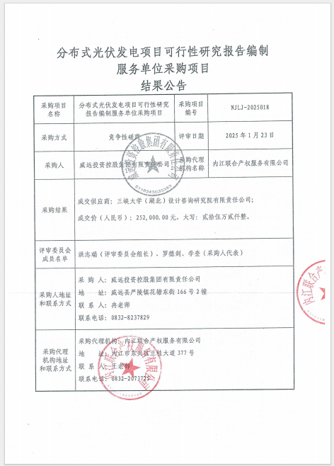 分布式光伏發(fā)電項(xiàng)目可行性研究報(bào)告編制服務(wù)單位采購(gòu)項(xiàng)目結(jié)果公告