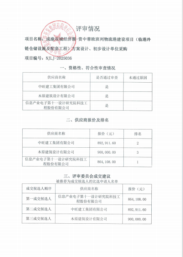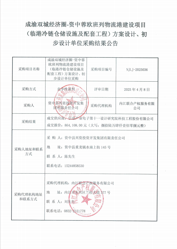 成渝雙城經(jīng)濟圈-資中蓉歐班列物流港建設(shè)項目(臨港冷鏈倉儲設(shè)施及配套工程)方案設(shè)計、初步設(shè)計單位采購結(jié)果公告