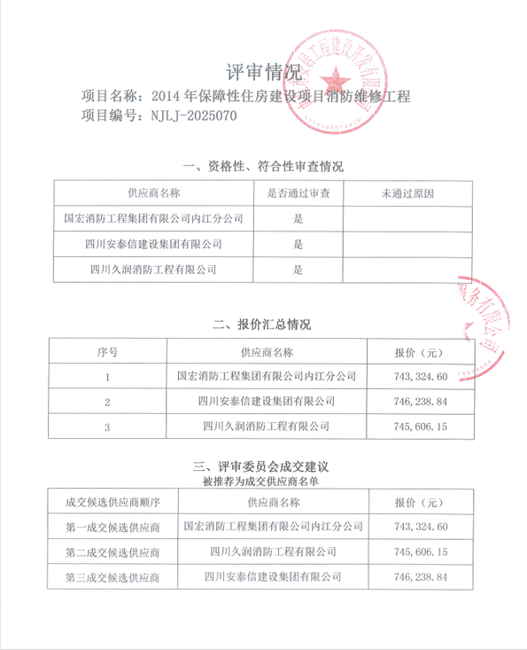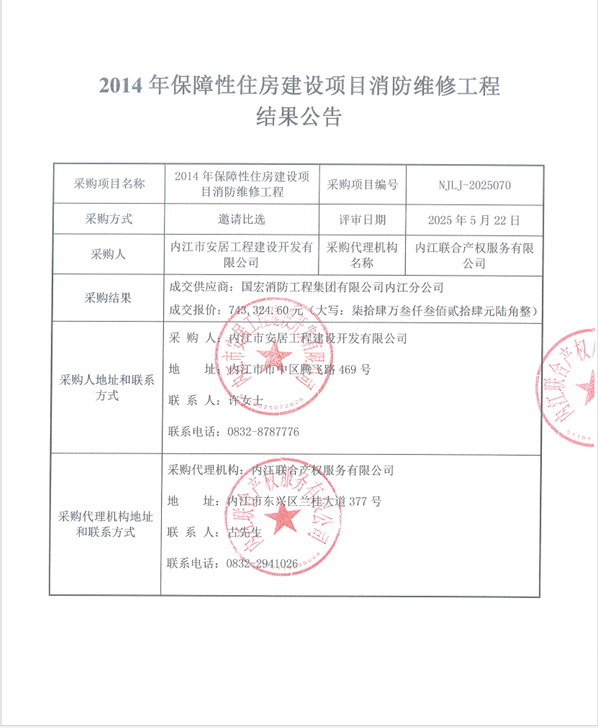 2014年保障性住房建設(shè)項(xiàng)目消防維修工程結(jié)果公告