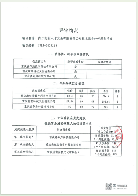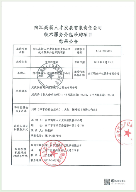 內(nèi)江高新人才發(fā)展有限責任公司技術(shù)服務(wù)外包采購項目結(jié)果公告