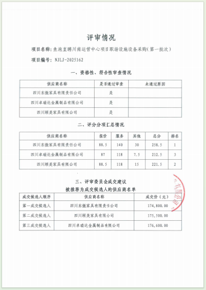 魚泡直聘川南運營中心項目職場設(shè)施設(shè)備采購(第一批次)結(jié)果公告